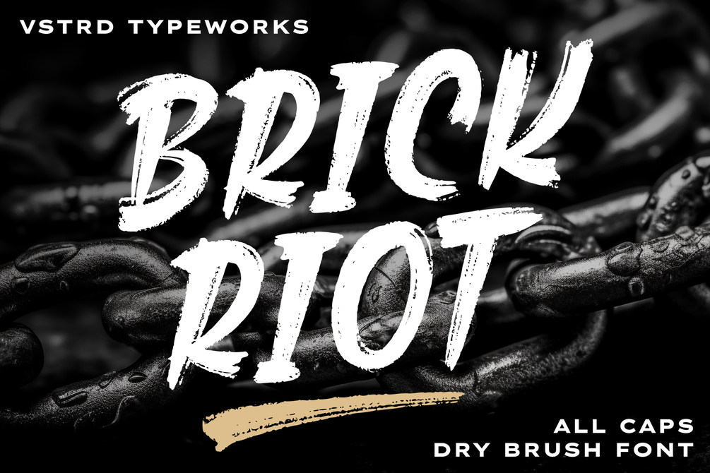 Ideal for logos, food & beverage branding, promotional campaigns, video titles, product packaging, quotes, posters, flyers, t-shirts, and eye-catching text overlays, BRICK RIOT adds a handcrafted, urban feel to any design.