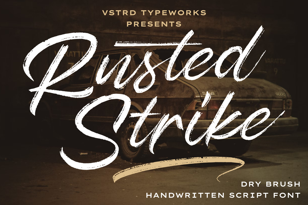 Whether you're designing logos, signatures, video titles, product branding, quotes, printable templates, posters, flyers, t-shirts, or adding a striking overlay to images, Rusted Strike brings a handcrafted aesthetic that stands out.