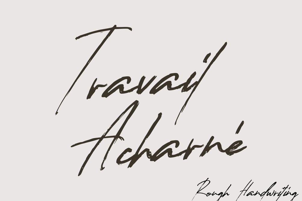 Travail Acharné is a raw and expressive rough handwriting font, crafted with an untamed, hand-scanned feel. Its rugged strokes and organic imperfections bring an authentic, hardworking character to any design.